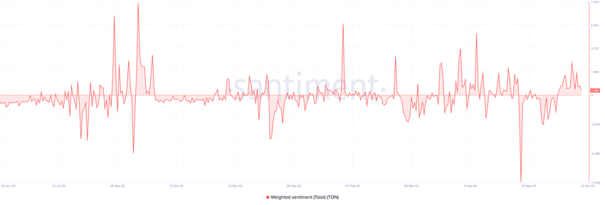 Sponsored SponsoredIl sentimento ponderato della moneta è positivo al momento della stampa, confermando la tendenza rialzista verso TON. Sopra lo zero, il suo valore attuale è 0,36.