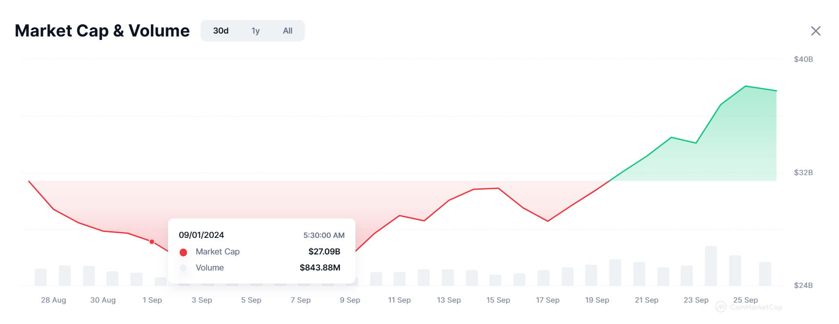 Il prezzo del Bitcoin è aumentato del 7,8% nel mese di settembre, anche quando il mercato delle criptovalute non mostrava segnali rialzisti. Questo aumento ha portato BTC a scambiarsi a 63.658 USD al momento della scrittura.