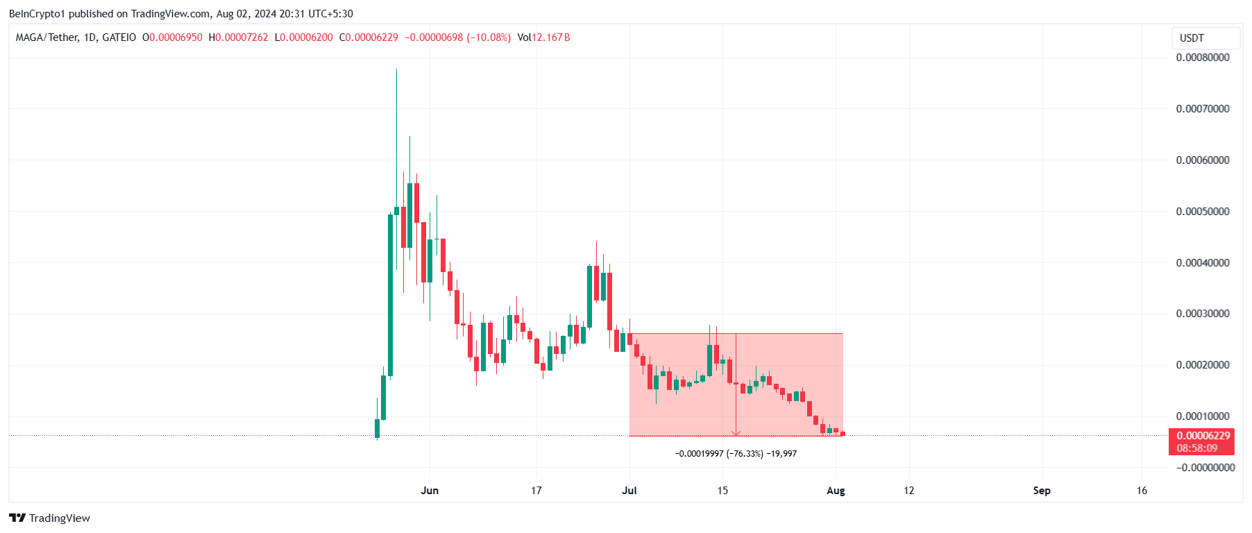 Nell’ultimo mese, i principali token Politifi, come TRUMP, MAGA, MVP e altri, hanno registrato cali fino al 65%.