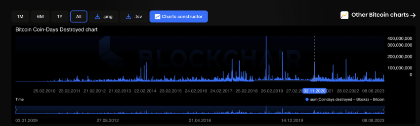 Si tratta di un indicatore che identifica il movimento dei BTC detenuti a lungo. Può essere uno strumento affidabile, in quanto raccoglie le menti degli investitori e può tracciare il loro comportamento. Per quanto riguarda la formula, i valori del BDD sono il prodotto dei BTC coinvolti in una particolare transazione e il numero di giorni trascorsi dal movimento di tali BTC.