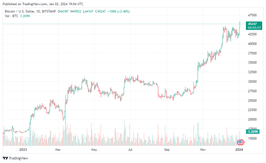 Tutti questi fattori hanno contribuito al rendimento del prezzo del BTC nel 2023 (più del 150%) e probabilmente alimenteranno la narrativa della sua crescita nel 2024.