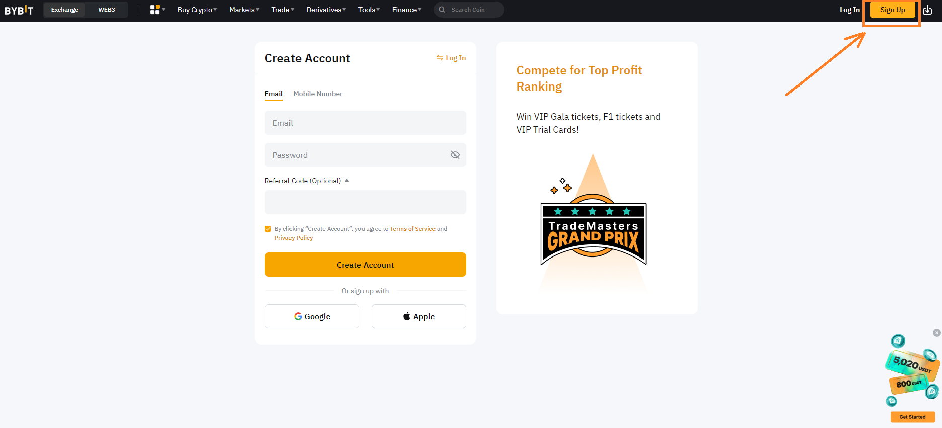 Se non avete ancora un account su Bybit, è il momento di crearlo. Il processo è semplicissimo. Potete registrarvi utilizzando il vostro indirizzo e-mail o il numero di cellulare, oppure potete accedere direttamente con il vostro ID Google o Apple.
