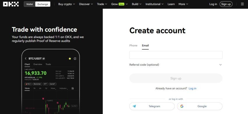 Se non hai già un account con OKX, devi registrarti prima di acquistare e scambiare sulla piattaforma. Creare un account richiederà di confermare la tua identità per motivi di sicurezza. Gli utenti devono fornire un documento d’identità o una patente di guida. Una volta impostato, puoi acquistare crypto.