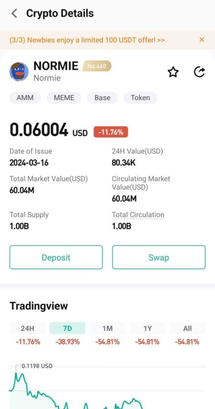 NORMIE opera sul layer-2 della Base Chain. Il meme coin ha debuttato nel marzo 2024, ma è diventato rapidamente uno dei token più ricercati includendo progetti come BOME, PUPS e WIF.