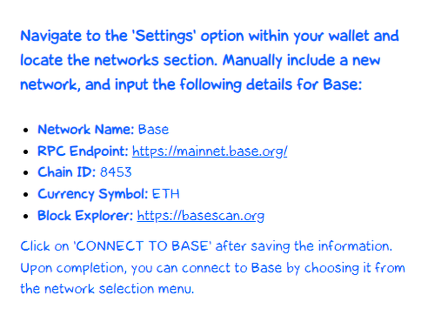 - Se dovete aggiungere la catena Base al vostro portafoglio, selezionate l’ID della catena corretta.