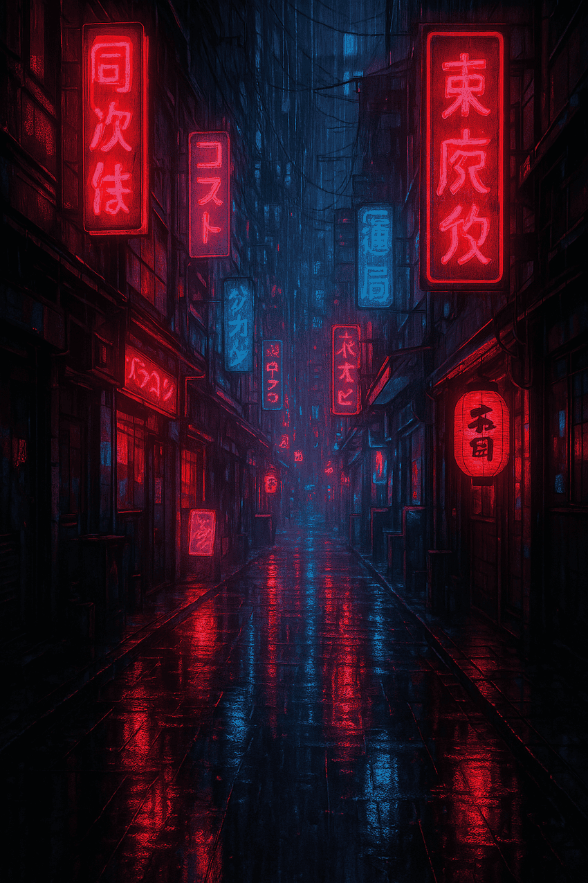 - Stile cyberpunk: “Una strada piovosa in una città futuristica, insegne al neon ovunque, stile cyberpunk.”