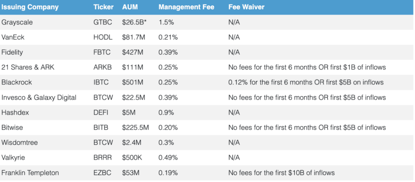 Ora che sappiamo la storia, ecco un elenco di tutti gli ETF Bitcoin spot approvati: