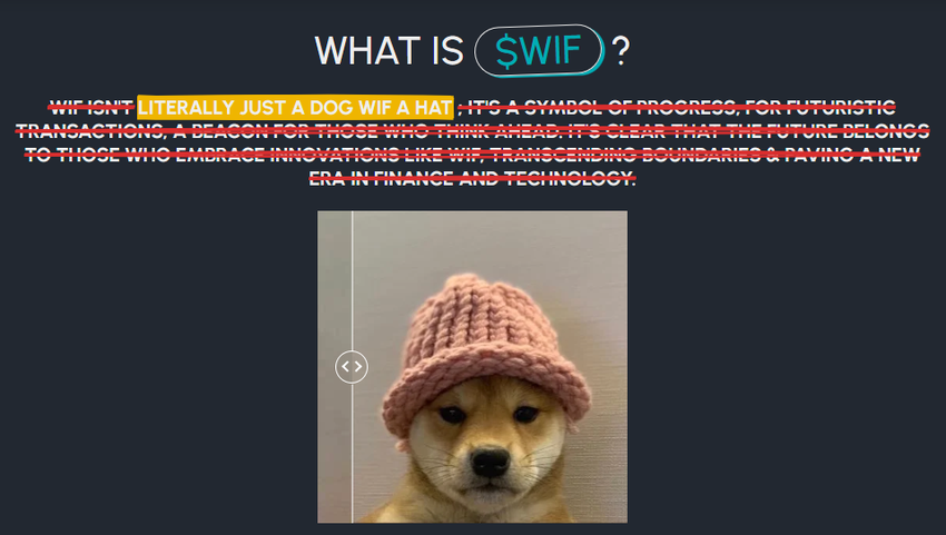 Dogwifhat (WIF) è uno degli ultimi token a capitalizzare la tendenza delle memecoin Solana. La mascotte del token si basa su un meme di tendenza su internet di un cane Shiba Inu – “wif” un cappello rosa.