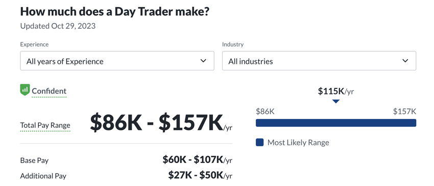 Secondo Glassdoor, il guadagno di un day trader può variare in modo significativo, con un compenso annuo totale che va da 86.000 a 157.000 dollari.