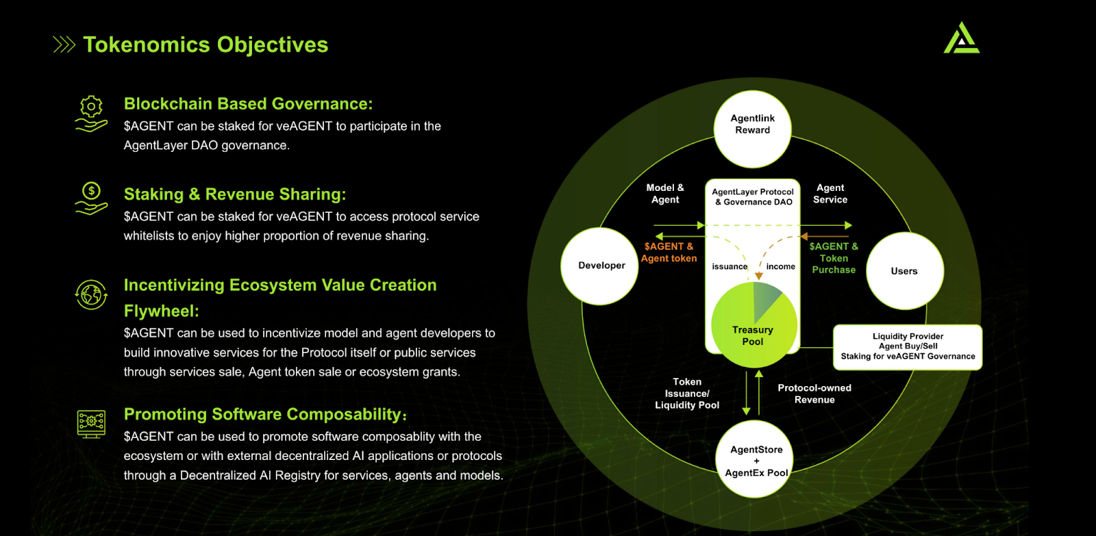 - Incentivazione dei contributi, in cui gli sviluppatori vengono ricompensati con i token AGENT.