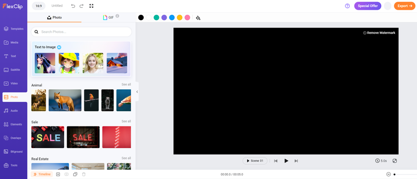 Basta digitare le richieste di testo, scegliere uno stile, decidere il rapporto ideale e premere “Genera”. L’intelligenza artificiale farà tutto il lavoro necessario. E se volete cambiare lo sfondo di alcune delle vostre foto, FlexClip vi copre anche in questo caso, con la sua utility di rimozione dello sfondo AI.