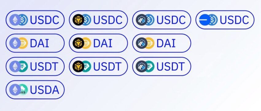 - Stablecoin supportate: USDT, USDC, DAI, USDA