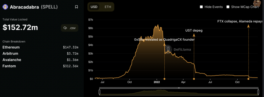 Non sappiamo quanto sia profondo il marciume di FTX. Né sappiamo quanto a lungo avrà un impatto sui mercati DeFi con una forte esposizione al TLT. Per ora, aspettiamo e osserviamo Abracadabra e SPELL.