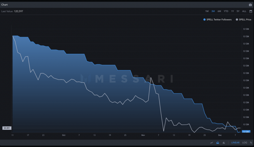L’attività sociale sembra tiepida e non sufficiente a determinare un rialzo immediato del prezzo del token Spell.