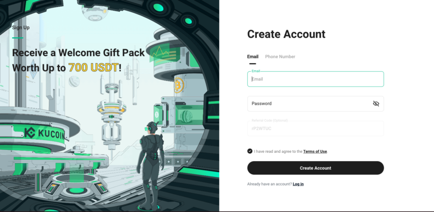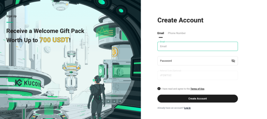 L’aspetto successivo è la facilità di iniziare. In KuCoin, il processo è semplice come in qualsiasi altro piattaformadiscambio centralizzato. È sufficiente iscriversi, creare un account utilizzando il proprio ID e-mail o numero di telefono e verificare le credenziali KYC quando richiesto.
