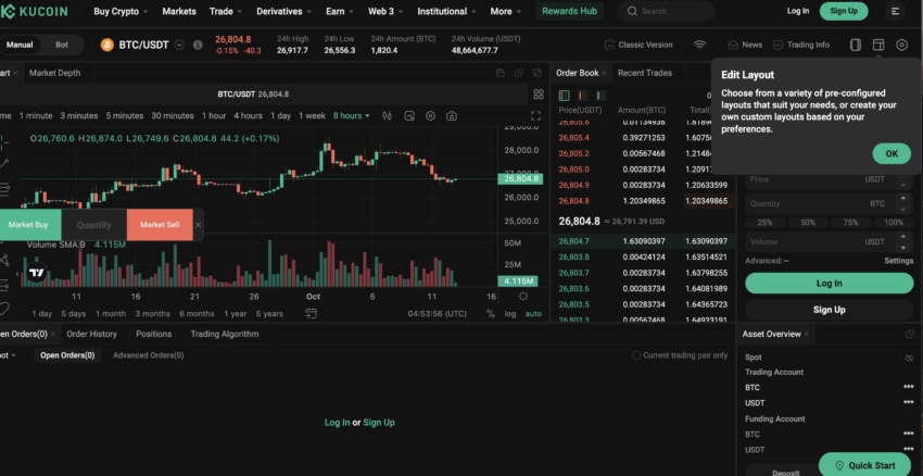 - L’interfaccia utente di KuCoin è facile da usare