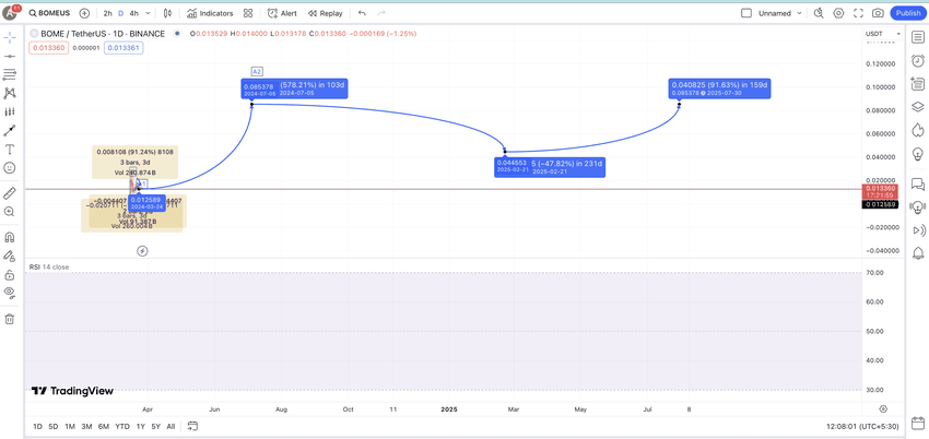 Per maggiore chiarezza, passiamo ora al grafico giornaliero del prezzo di BOME.