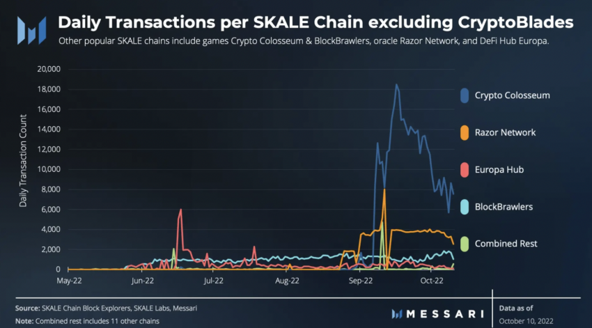 Tuttavia, la maggior parte delle transazioni erano sulla sidechain di CryptoBlade. Ecco come appare il conteggio delle transazioni se escludiamo CryptoBlades dall’equazione.