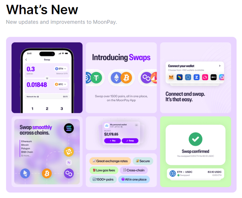 In sintesi, ecco un elenco delle funzionalità di MoonPay: