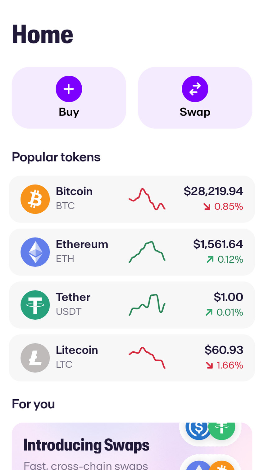 - Supporta swap nell’app mobile