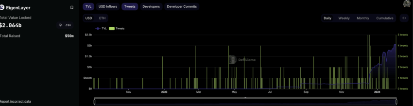 Nonostante l’esistenza di un gergo complicato su questo argomento, EigenLayer e il suo ruolo sono relativamente semplici e facili da comprendere. Si tratta di un protocollo con una significativa presenza di DeFi, grazie al valore bloccato. Il valore deriva dagli ETH di interesse che le persone spingono o stanno spingendo nel protocollo EigenLayer, consentendogli di estendere automaticamente lo stesso all’AVS.