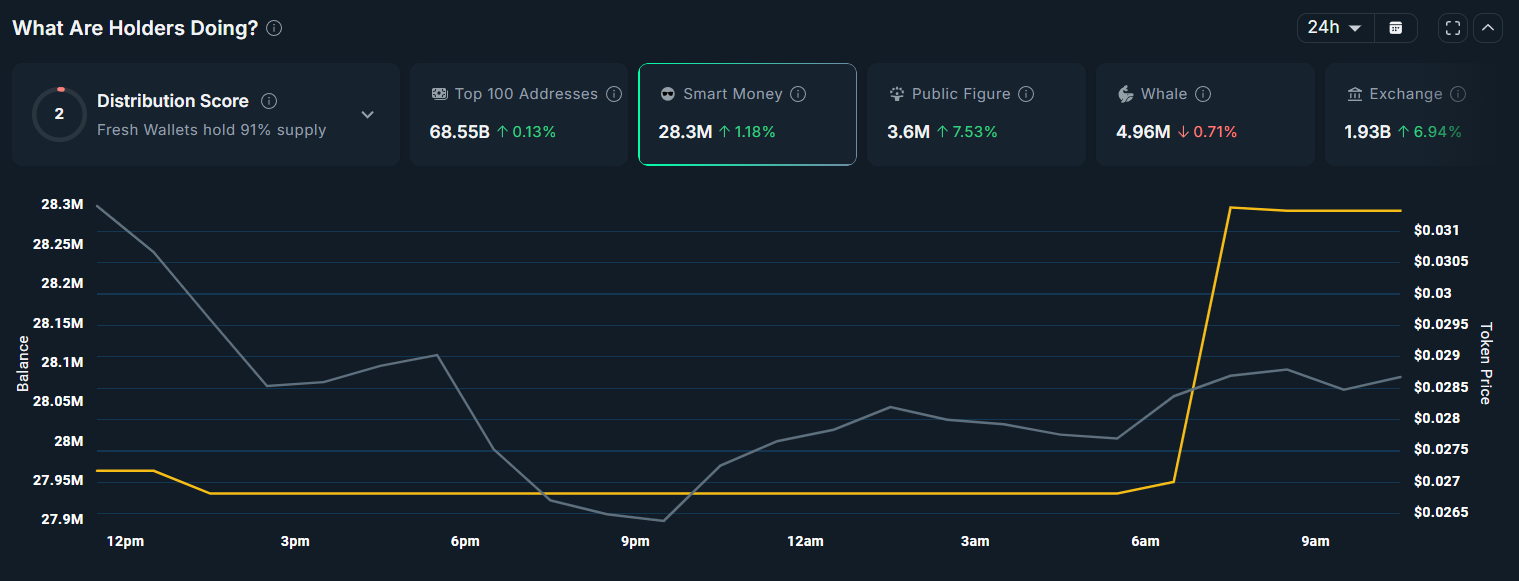 È interessante notare che gli investitori Smart Money continuano a mostrare fiducia in LINEA. I dati rivelano che nelle ultime 24 ore, le loro partecipazioni sono aumentate da 27,96 milioni di LINEA a 28,29 milioni di LINEA. Questo accumulo costante evidenzia che gli investitori sofisticati stanno scommettendo sul potenziale a lungo termine del token.