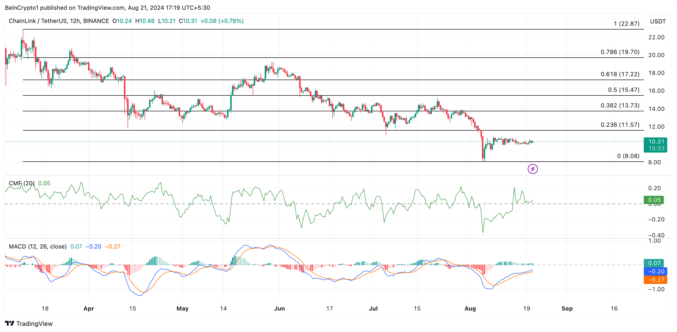 Chainlink (LINK) ha registrato un’impennata dell’accumulazione nelle ultime 12 ore, come evidenziato dagli indicatori di slancio in aumento.