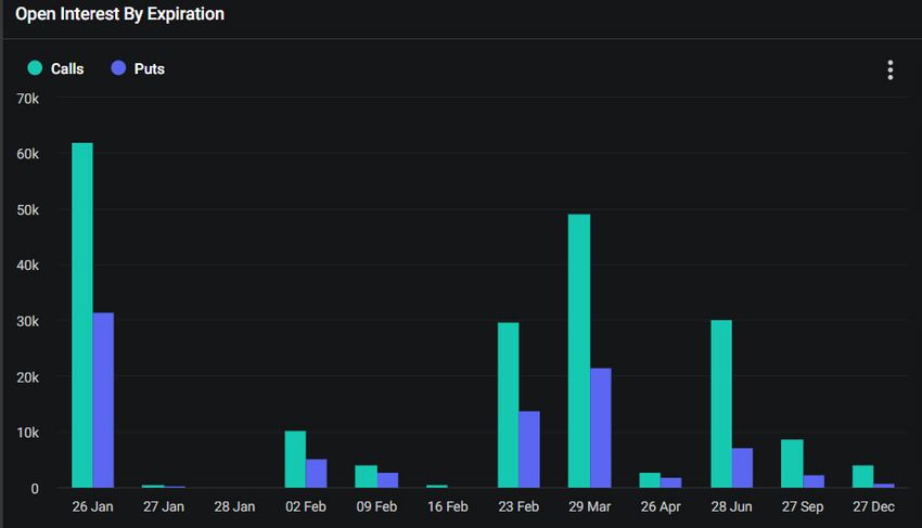 Oltre alla scadenza odierna delle opzioni sul Bitcoin, ci sono 931.610 contratti di opzioni su Ethereum che scadono il 26 gennaio.