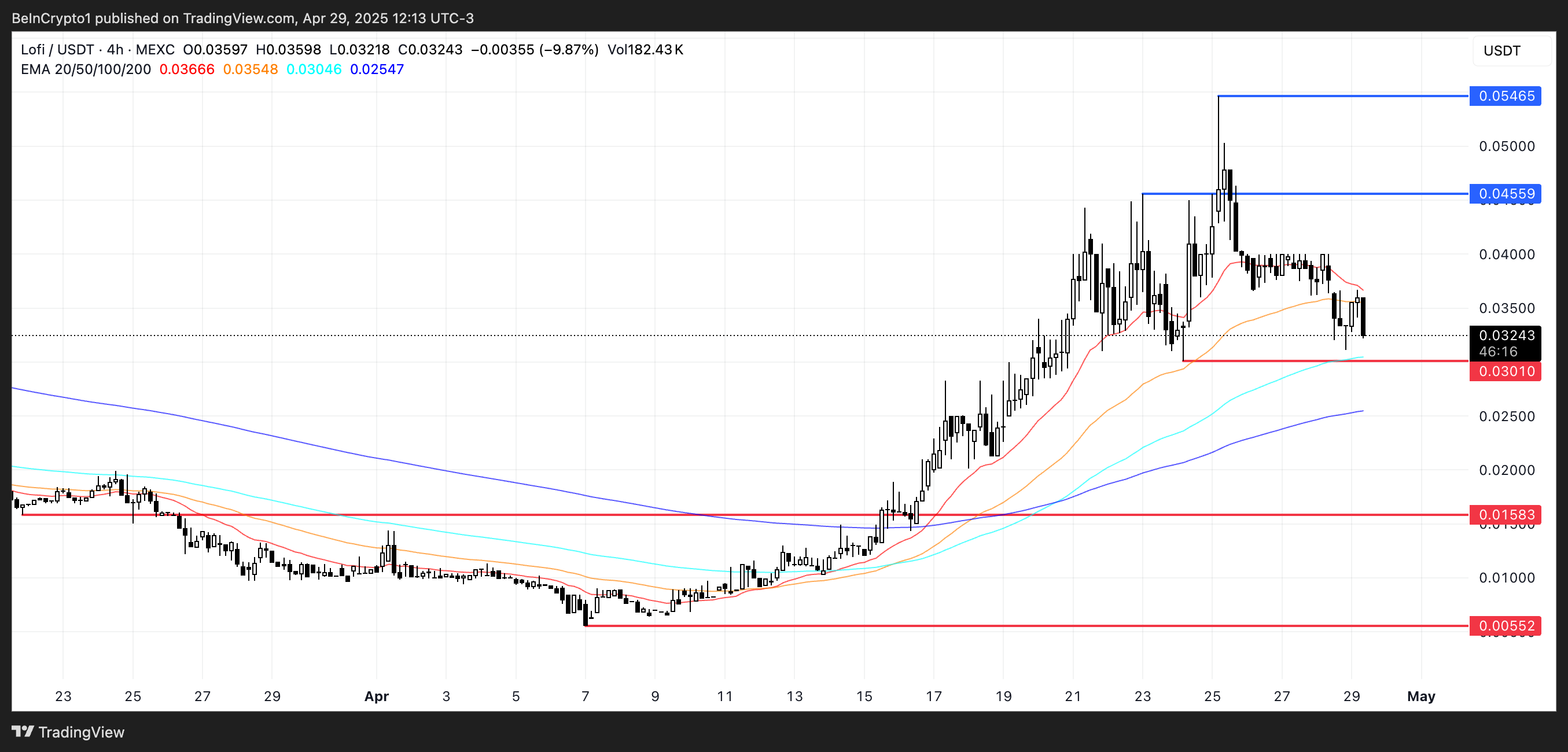 LOFI continua la sua spinta per diventare uno dei progetti meme più riconosciuti sulla blockchain SUI. Se lo slancio riprendesse, LOFI potrebbe superare la soglia di $0,045 e sfidare potenzialmente $0,054 in un rally esteso.