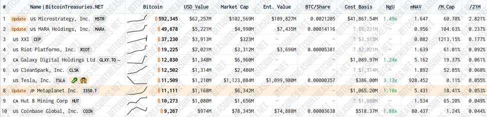 Nel frattempo, questo sviluppo arriva solo un giorno dopo che Metaplanet ha rivelato di aver acquisito ulteriori 1.111 BTC, portando il totale delle sue partecipazioni in Bitcoin a 11.111 BTC.