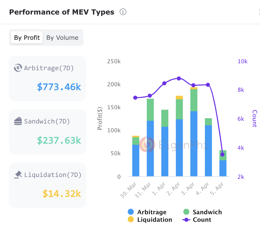 SponsoredNegli ultimi sette giorni, i trader hanno realizzato profitti per quasi 1 milione di dollari, utilizzando vari tipi di tecniche MEV.