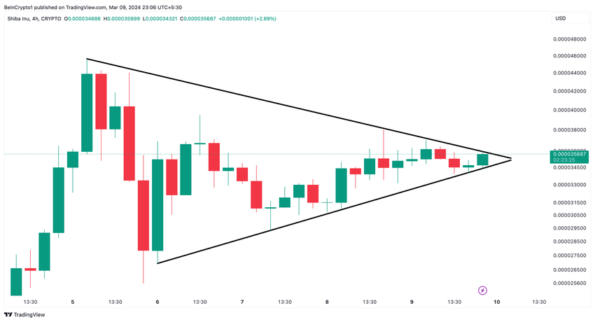 “Shiba Inu forma un triangolo simmetrico sul grafico a 4 ore. Una chiusura sostenuta al di sopra della resistenza di 0,000038 dollari potrebbe innescare un breakout rialzista del 40%, spingendo SHIB verso 0,000052 dollari”, ha detto Martinez.