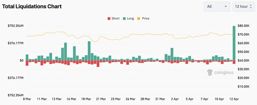 Solo nelle ultime 24 ore, i dati di Coinglass indicano che circa 775,40 milioni di dollari sono stati liquidati dalle posizioni lunghe nei mercati dei derivati. Anche le posizioni corte non sono state risparmiate, con circa 89,89 milioni di dollari liquidati.