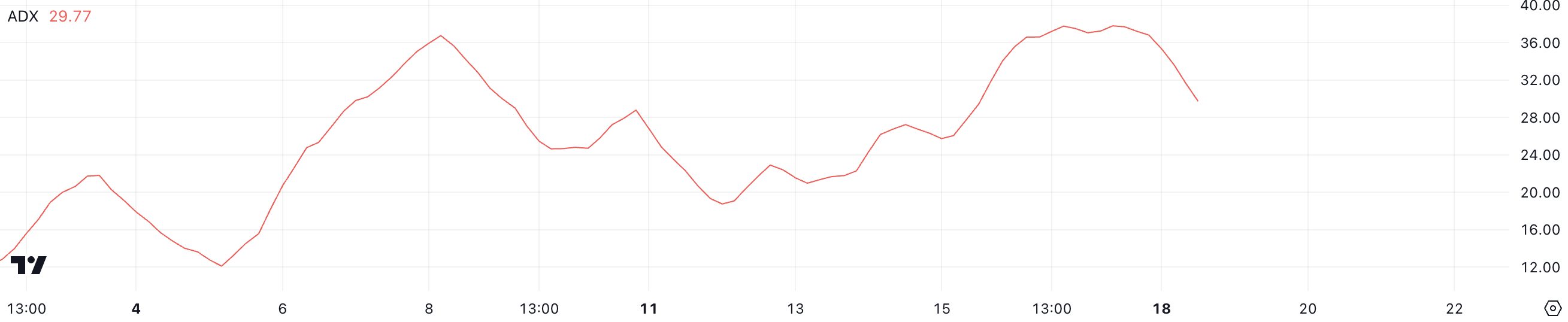 GOAT ADX è sceso a 29,77 da 38 negli ultimi giorni, indicando un indebolimento della forza del trend. Sebbene il valore suggerisca ancora un trend ascendente, il calo mostra che il momento dietro il trend attuale sta svanendo.