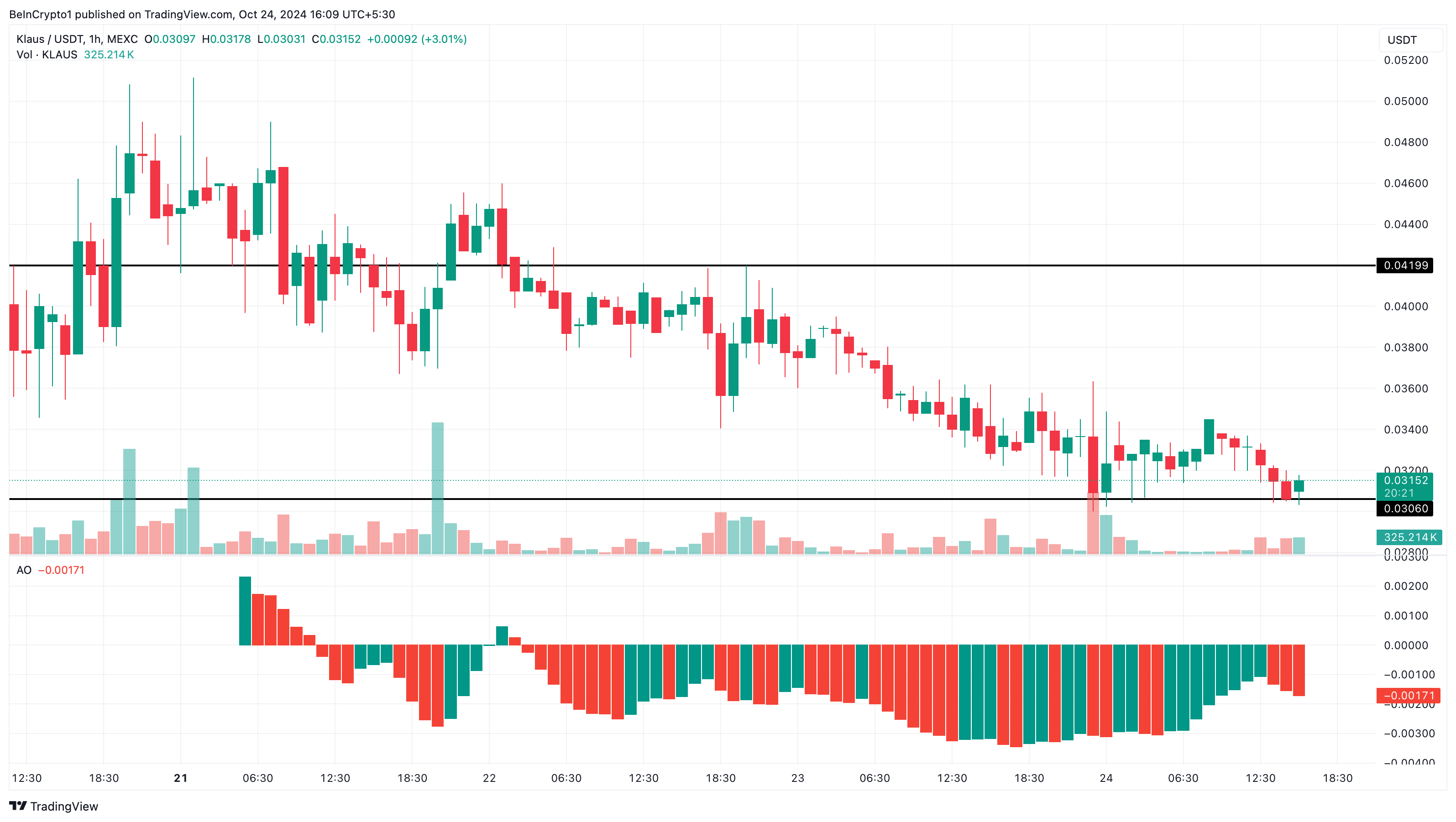 Considerando la condizione degli indicatori, il prezzo di KLAUS potrebbe scendere a USD 0,028. Tuttavia, se gli investitori iniziano a comprare di nuovo l’altcoin e difendono la regione di USD 0,030, potrebbe rimbalzare. In quel caso, il token potrebbe salire a USD 0,042.