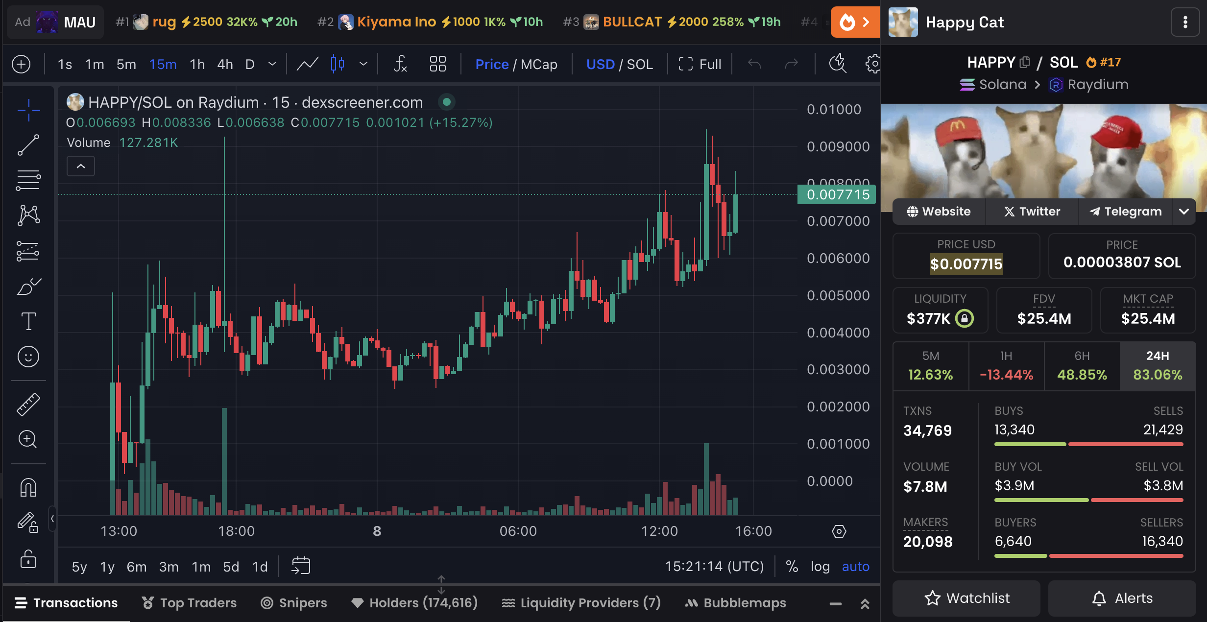 Con un market cap di 25 milioni USD, HAPPY ha attirato molta attenzione. Se lo slancio continua, raggiungere il traguardo di 50 milioni USD potrebbe essere il prossimo passo logico. La moneta ha già una base di oltre 174.000 detentori.