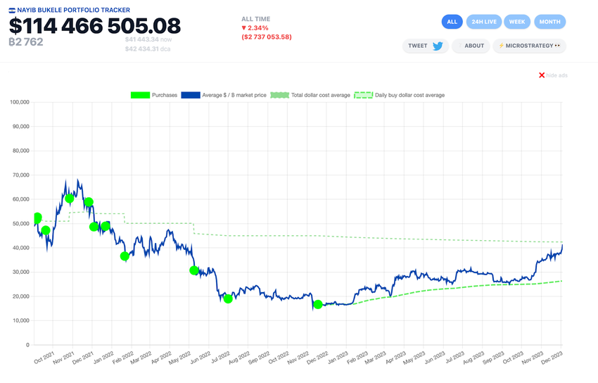 Durante i minimi del novembre 2022, il Paese aveva perdite non realizzate per oltre 54 milioni di dollari. Tuttavia, Bukele ha annunciato che El Salvador avrebbe acquistato un Bitcoin al giorno.
