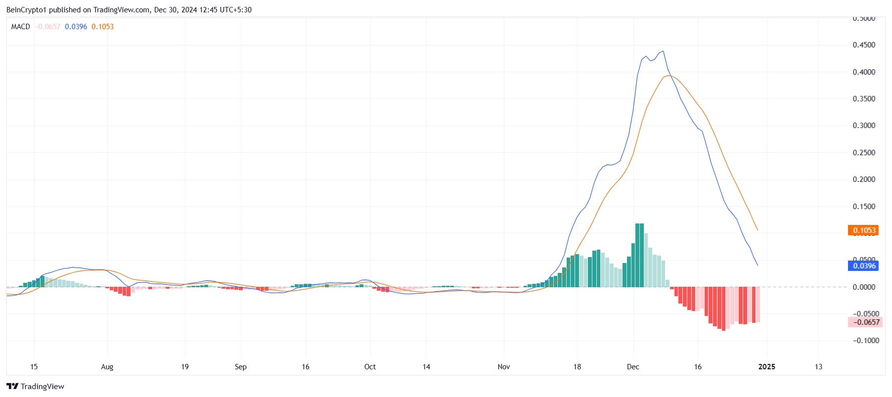 L’indicatore MACD (Moving Average Convergence Divergence) aggiunge una prospettiva ribassista, senza segni di un crossover rialzista in vista. Questa mancanza di slancio è improbabile che cambi con l’inizio del 2025, con il crossover ribassista che riflette segnali di mercato negativi più ampi.