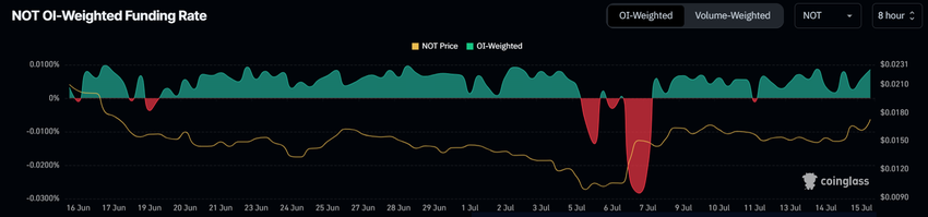 Inoltre, la costante inclinazione del tasso di finanziamento da una fase negativa riflette una crescente fiducia nel mercato. Questa tendenza al rialzo è un chiaro indicatore dell’ottimismo degli investitori e della loro credenza nel potenziale di Notcoin.