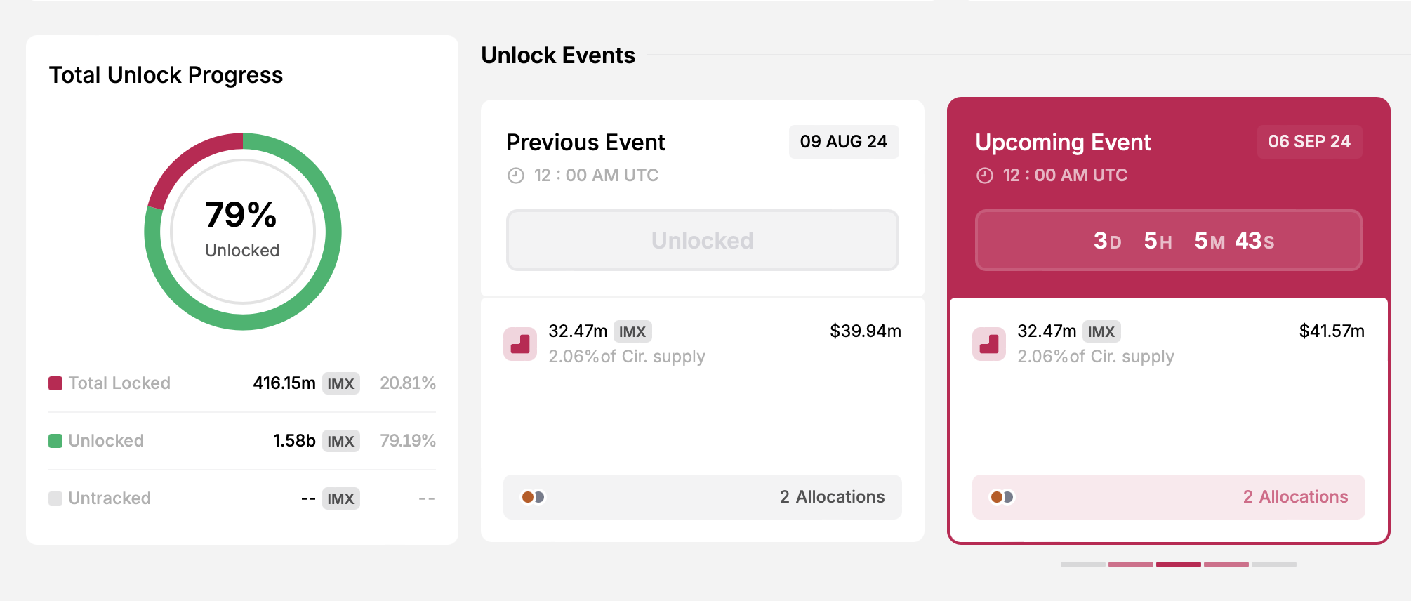 Il 6 settembre, l’offerta circolante di IMX aumenterà di 32,47 milioni di token. Queste nuove monete sbloccate saranno allocate allo sviluppo del progetto e all’ecosistema più ampio.