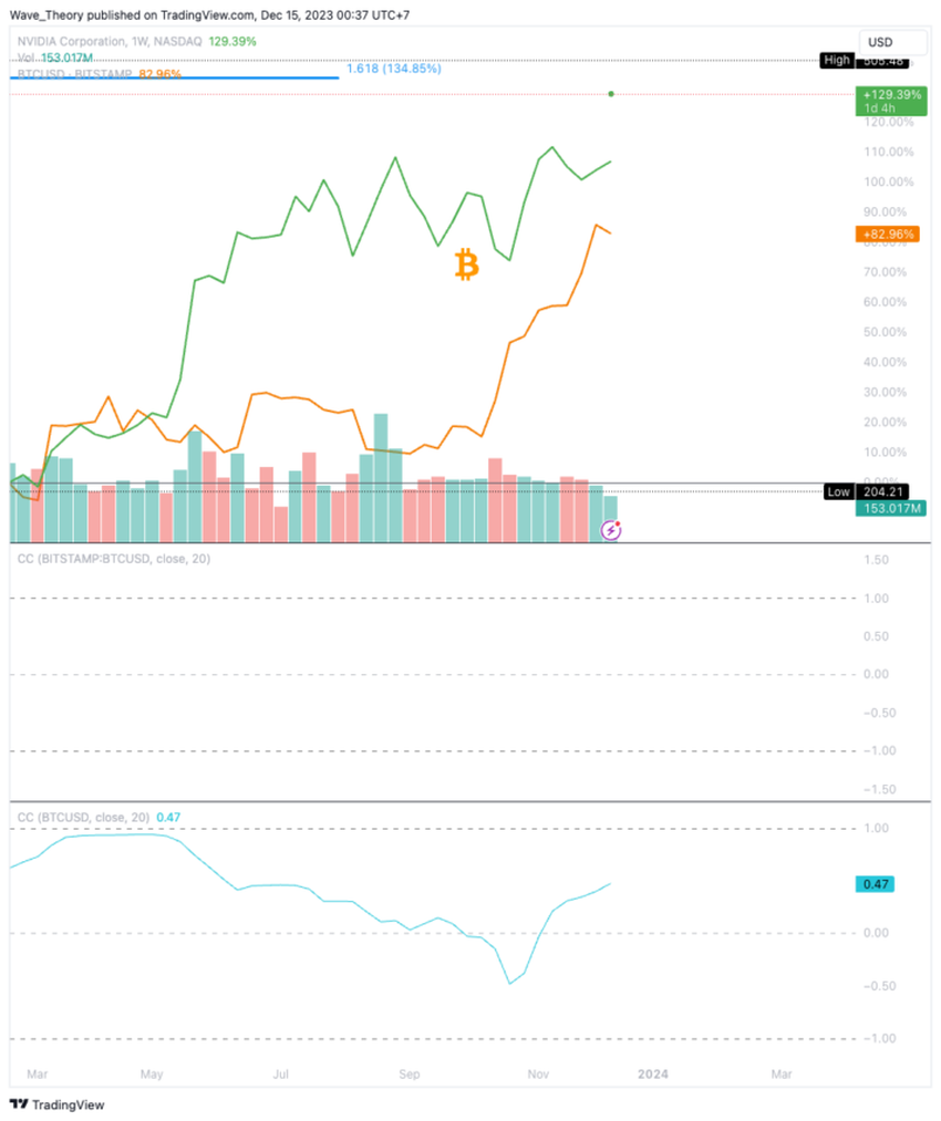Correlazione in aumento osservata tra Bitcoin e Nvidia