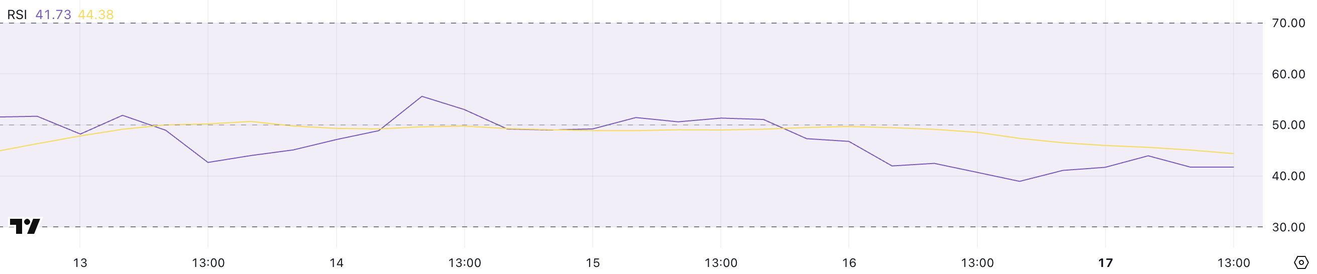 L’RSI è rimasto in una zona neutra per la scorsa settimana, fluttuando tra 41 e 55, senza mostrare un forte trend rialzista o ribassista.