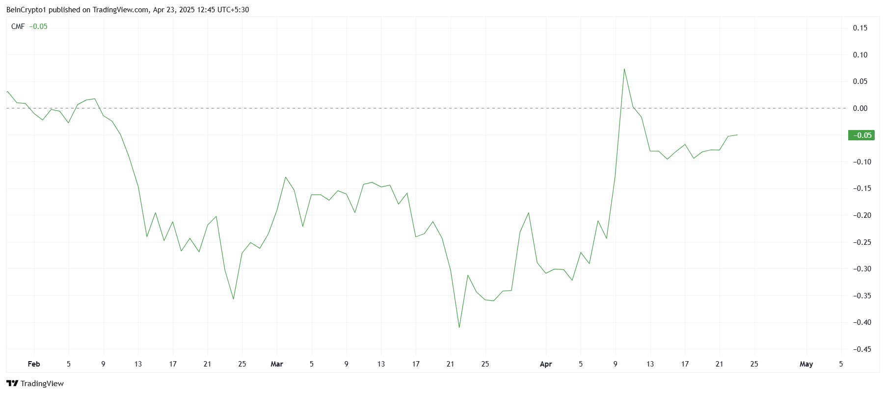 Il macro slancio di Onyxcoin presenta anche sfide per gli investitori. L’indicatore Chaikin Money Flow (CMF), che misura la media ponderata per il volume di accumulazione e distribuzione, è attualmente in territorio negativo, segnalando che i deflussi stanno ancora dominando il mercato. Sebbene il CMF sia in lieve aumento, non è stato in grado di sostenere alcun movimento al rialzo significativo. Questo continuo dominio dei deflussi suggerisce che XCN sta ancora lottando per mantenere uno slancio rialzista.