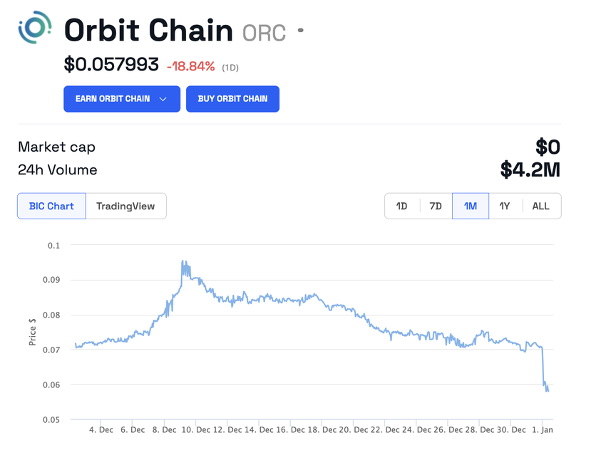 “Un accesso non identificato a Orbit Bridge, un protocollo cross-chain decentralizzato, è stato confermato il 31 dicembre 2023 alle 08:52:47 PM +UTC.