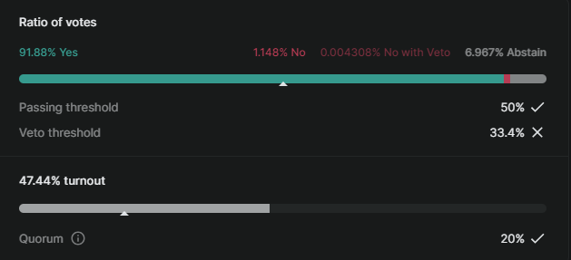 È probabile che la proposta passi, con il 91,88% dei voti a favore e un’affluenza alle urne del 47,44%. Se approvata, la DAO rinuncerà alle commissioni di ricongiungimento dei Bitcoin per le transazioni che hanno origine o terminano su Osmosis.