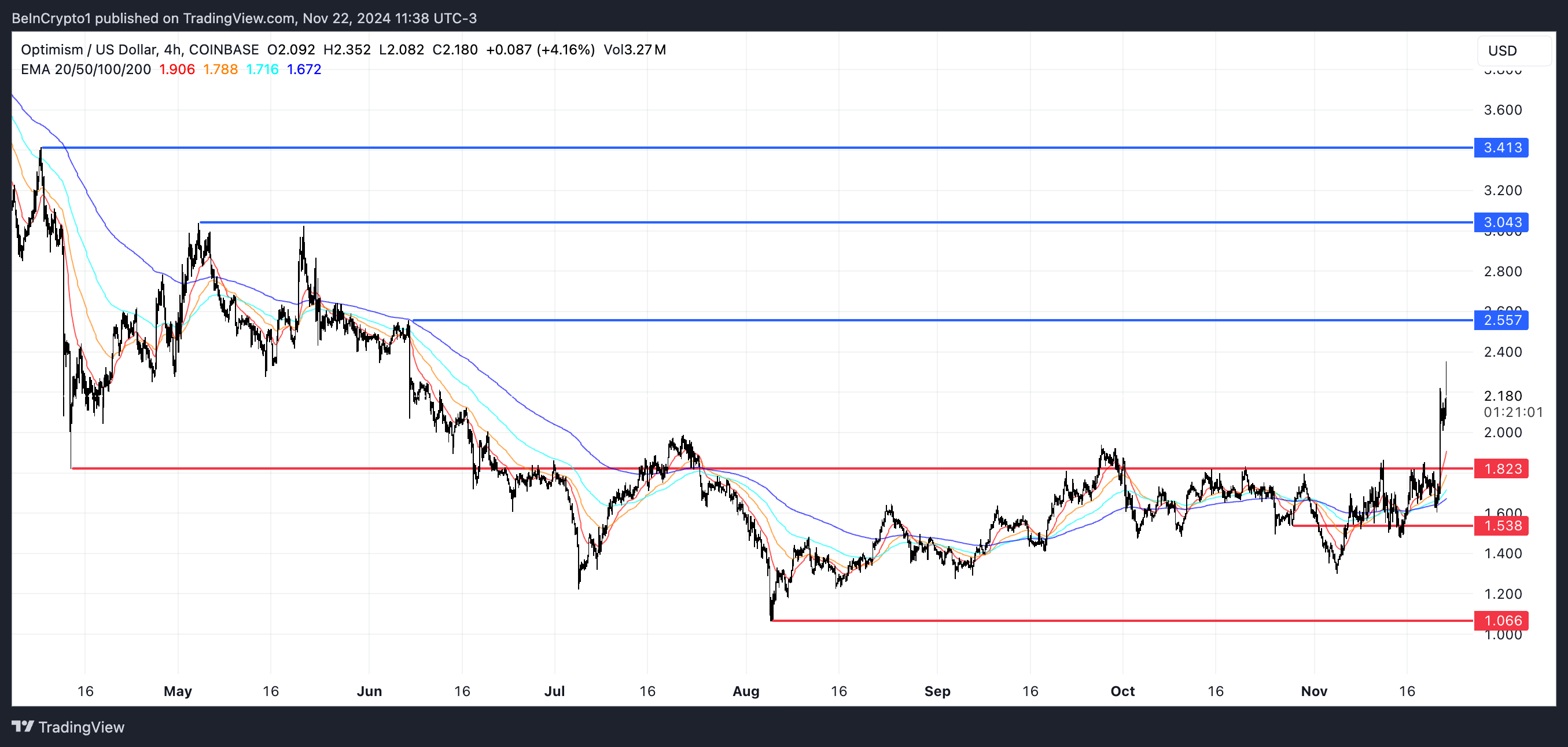 Tuttavia, se il trend si inverte, il prezzo di OP potrebbe affrontare una significativa pressione al ribasso, con i prossimi supporti a 1,82 USD e 1,53 USD.