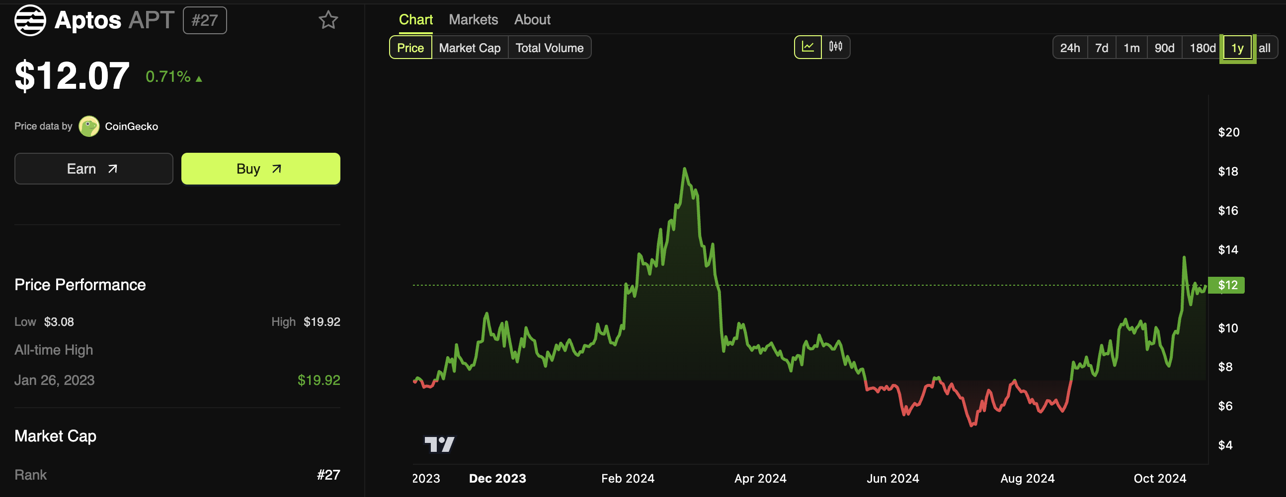 Da parte sua, Aptos sta intraprendendo un processo di recupero. Nonostante un grande picco di prezzo a marzo, ha subito un calo persistente per la maggior parte del 2024. L’asset ha iniziato a riprendere slancio a ottobre, e il mercato rialzista di novembre ha portato un aumento dell’ottimismo. Tuttavia, i suoi guadagni si sono stagnati per circa una settimana.