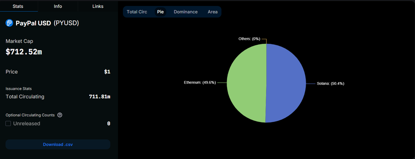 Tuttavia, PYUSD ha affrontato sfide, soprattutto negli ultimi mesi. Nonostante il successo iniziale, la capitalizzazione di mercato della stablecoin è diminuita di quasi 30% tra agosto e settembre 2024, da 1,012 miliardi USD a 712,52 milioni USD, principalmente a causa della ridotta domanda sulla blockchain di Solana.
