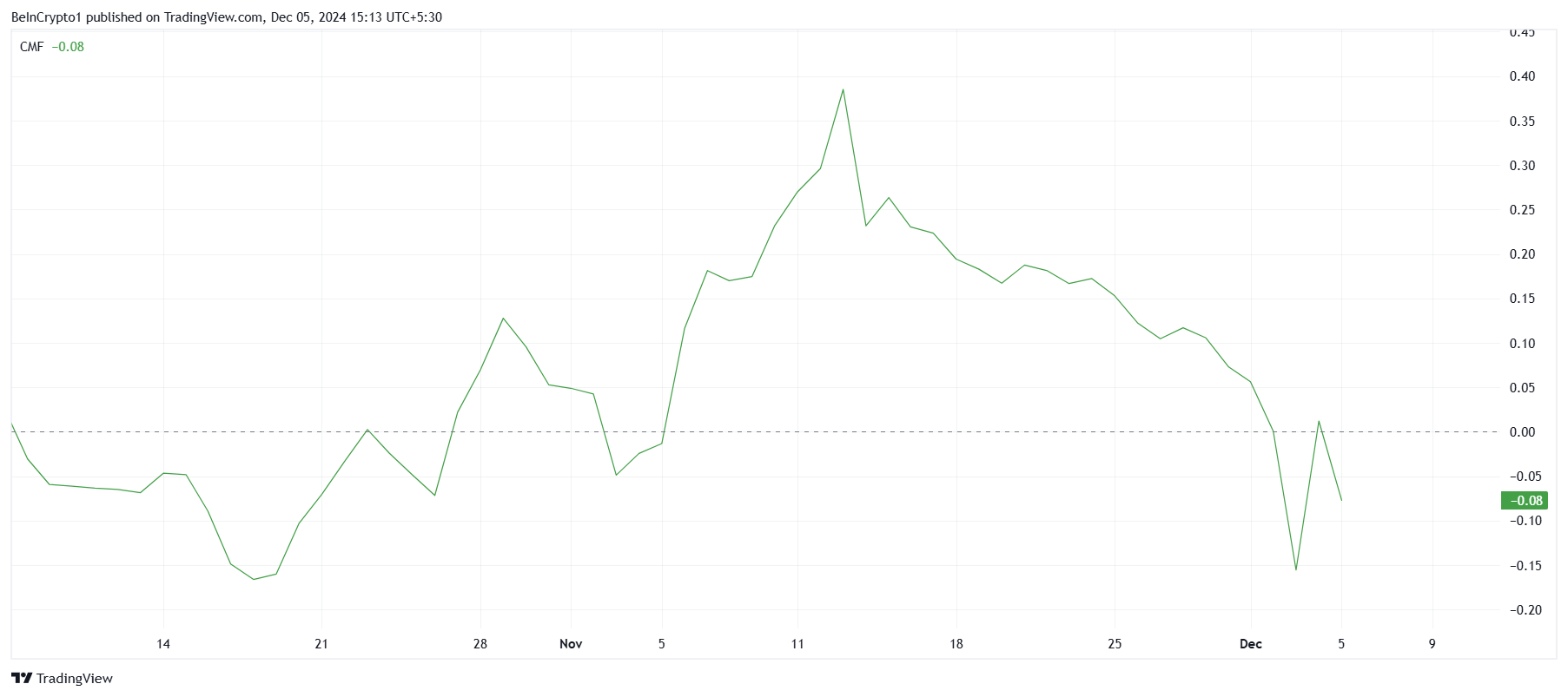 Questa tendenza al ribasso segnala che, senza nuovi investimenti, PEPE potrebbe continuare a affrontare sfide nel mantenere i guadagni precedenti. Il calo del CMF suggerisce che i detentori attuali stanno liquidando le loro posizioni o non reinvestono, il che potrebbe limitare la crescita di PEPE a meno che non entri nuovo capitale nel mercato.