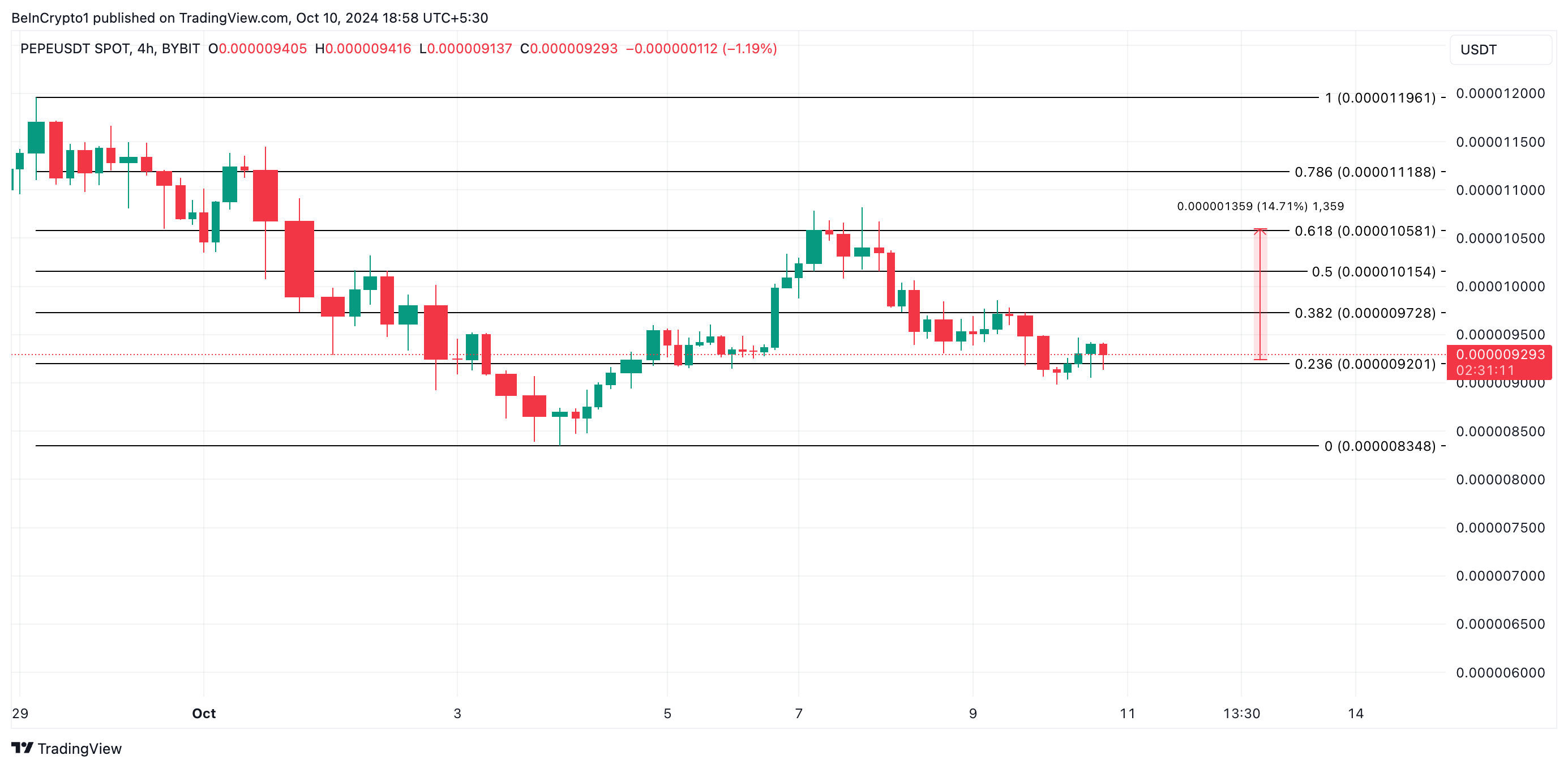 Tuttavia, questa prospettiva verrebbe invalidata se la pressione di acquisto diminuisse. In tal caso, il prezzo di PEPE potrebbe perdere i recenti guadagni e scendere a 0,0000083 dollari.